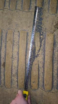 图为用测量工具仔细测量盲道裂缝宽度,精准记录数据,后续将用于分析统计,以评估该路段盲道对视障人士出行的影响。