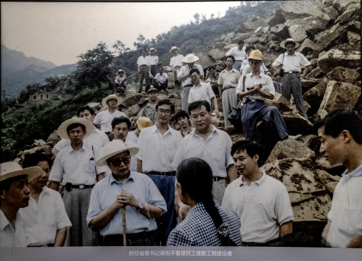 图为时任省委书记蒋祝平看望民工建勤工程建设者的照片,一张泛黄的老照片体现出国家对民工建设者的暖心慰问,表达出国家对老百姓的真切关怀。宋慧姿通讯员摄