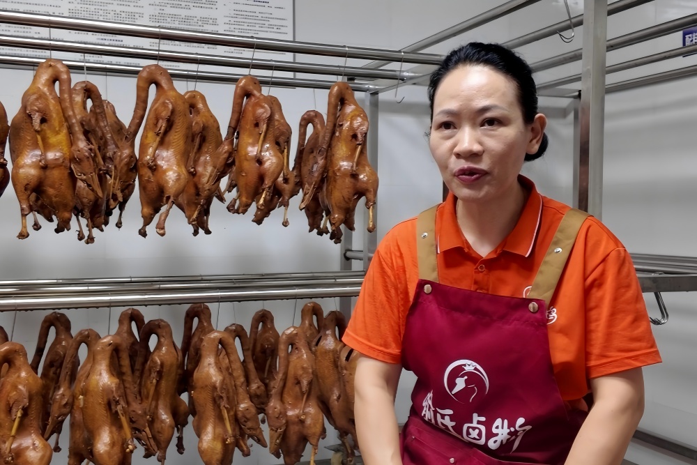 在卤鹅店铺生产车间,晾晒的卤鹅香气四溢。老板分享了卤鹅的传承史与基础工艺,手艺核心传承人喻师傅则详细介绍了百年卤水养护、香料配比、选材标准及火候把控等核心技艺。品尝着色泽红亮、美味可口的卤鹅,成员们不仅记住了这份独特味道,更记住了卤鹅制作背后传承人的坚守与匠心。
