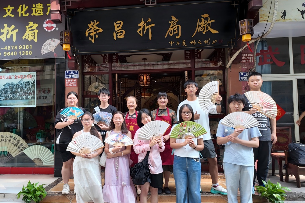 在为期一周的调研实践中,团队通过实地走访、深度访谈、亲身体验等方式,对荣昌各项非遗项目展开全方位探究。系统性整理形成了涵盖历史文化、制作技艺、传承现状的完整资料体系,为后续非遗研究与推广提供了扎实的数据支撑。在实践过程中,团队成员深刻体会到传统与现代碰撞的火花。夏布小镇里,素白麻布与现代设计结合的文创产品,让古老的夏布工艺在时尚语境中重获新生;在折扇厂的体验中,大家既惊叹于传统工序的繁复,也开始思考如何让折扇这一传统工艺品吸引更多年轻人的目光。非遗并非封存的标本,而是流动的文化DNA,传承的关键在于把握“守正”与“创新”的辩证关系,既要守住文化根脉的“魂”,又要找到与当代生活对话的“桥”。