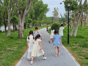 教育不止于方寸课堂,更在广阔天地。经过与托管中心密切沟通并逐一获得家长们的书面许可后,团队选择了一个午后,趁着暑热稍退、阳光变得温和之际,由组长带队,组织孩子们进行了一次精心规划的户外实践之旅,目的地是承载着地方文脉的宝应中学与京杭大运河宝应运堤段。这无疑是一堂生动而深刻的“行走中的课程”。踏入宝应中学这座莘莘学子向往的知识殿堂,一股浓郁而静谧的学术氛围扑面而来。错落有致的教学楼、设施完善的实验室、藏书丰富的图书馆,无不诉说着对知识的尊崇与追求。此时,教学楼里隐约传来的琅琅读书声,宛如夏日里清脆的蝉鸣,充满着生机与希望;宽阔的操场上,红色的塑胶跑道映衬着湛蓝的天空,随处可见青春的身影奔跑、跳跃,挥洒着汗水与激情。志愿者们引导孩子们漫步校园,讲述大学的学习生活,分享自己的求学故事,孩子们好奇地触摸着墙砖,聆听着讲解,眼神中闪烁着对知识的热爱和对未来中学生活的无限憧憬与向往。随后,队伍来到了被誉为“活着的文化遗产”的京杭大运河宝应运堤段。古老的运河如同一条碧绿的丝带,静静蜿蜒,千百年来滋养着宝应这片土地,见证了无数的历史变迁与人间烟火。河面上波光粼粼,拂面而来的微风夹杂着湿润的水汽和淡淡的水草清香,仿佛也带来了沉淀已久的历史回响。志愿者们事先做足了功课,此时化身文化讲解员,为孩子们讲述大运河开凿的艰辛、古代漕运的繁忙盛景、沿线城市因河而兴的故事,以及新时代背景下运河生态保护与文化传承的重要意义。孩子们倚靠着堤岸栏杆,凝望着悠悠流水,安静地听着,历史的厚重感与文化的自豪感或许还不能完全理解,但一颗爱家乡、知历史的种子已然悄悄播撒在心田。这次户外实践,极大地拓宽了孩子们的眼界,将学习从书本延伸到了真实的历史地理空间。同时,也让“红心研墨”团队的成员们深刻感悟到:教育的形态可以如此多元,社会实践就是一个融合了知识探究、文化体验、