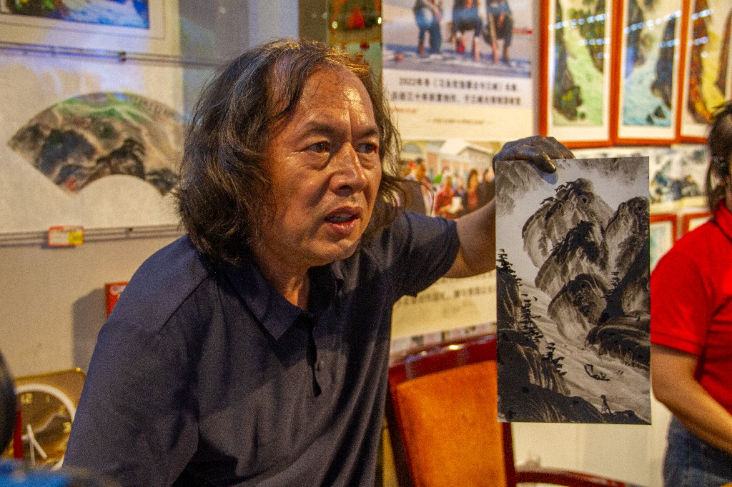 为吸引年轻人,他免费开培训班、带作品进校园社区。如今工作室已有 8 位固定学员,最小的 22 岁,还融入现代元素,让三峡水墨画焕发新活力。