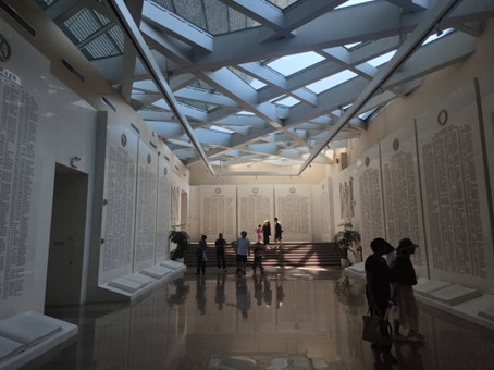 在英烈缅怀区内,队员们肃穆瞻仰。在大理石纪念墙上镌刻着一位位在渡江战役中牺牲的烈士的姓名。许多队员在纪念墙前注视,同时对这些先烈们进行致敬。一名队员表示:"每一位烈士都是一面旗帜,他们用生命诠释了红色基因的真谛,我们要把这种精神传承下去。"