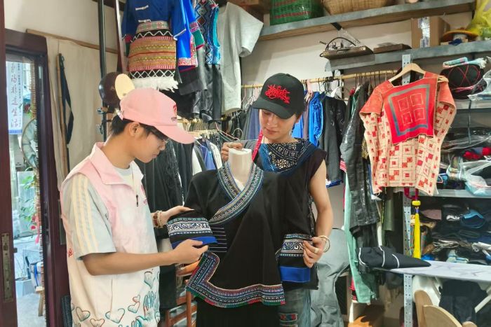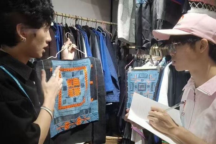 此外,志愿队关注到洛老师在非遗与现代生活融合方面的实践。洛老师致力于将非遗元素融入日常生活,其设计的壮锦记事本使用半幅壮锦装饰以贴合年轻化需求,麽乜耳坠缩小尺寸契合现代审美,在保留传统元素基础上,兼顾现代款式与新面料运用。洛老师提及,需对传统技艺进行提炼,将精华部分以更直观方式呈现,使非遗手工艺品符合现代审美与生活需求,推动传统文化“活”在新时代。当地打造的“萨玛非遗生活馆”坐落在现代化设计咖啡馆内,民族元素与现代空间碰撞融合,为非遗传播提供新场景。洛老师还收到邀约参加张家港守望长江·民俗文化市集,将广西民族文化带至浙江,这些实践为志愿队理解非遗传承创新提供了鲜活案例。