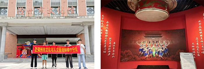溯源历史脉络,感悟文化内核 6月16日,滁州市博物馆内,团队以“分区域、重细节”方式开展调研。在“襟江带淮形兼吴楚——滁州古代文明陈列”展厅,队员们聚焦商周青铜器的饕餮纹、汉代画像石的农耕场景,通过文物纹饰与铭文,梳理滁州早期人类活动轨迹,推测古代祭祀文化与生产生活状态。转入“清流往事——滁州历史文化陈列”展厅,队员们借助场景复原与多媒体影像,沉浸式体验滁州历史关键节点,尤其在唐宋文化展区,结合《醉翁亭记》原文,还原欧阳修主政滁州时“与民同乐”的历史场景,重点记录相关文献拓本、文人墨宝,深入分析滁州成为唐宋文化重镇的地理与人文因素,期间还与讲解员交流补充民间传说,完善历史认知体系。
