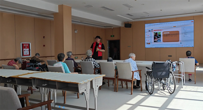 倾听陪伴传温情 另一组同学走进老人生活区,倾听老人讲述人生故事,询问生活需求。88岁的赵奶奶拉着学生的手说:“看到你们就像看到自家孙辈,心里暖!”同学们还与老人们交流生活,小小的举动传递浓浓温情。
