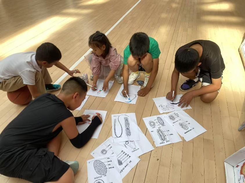 图二 图为实践团在芦花镇暑托班开展寄生虫科普绘画。罗英 供图