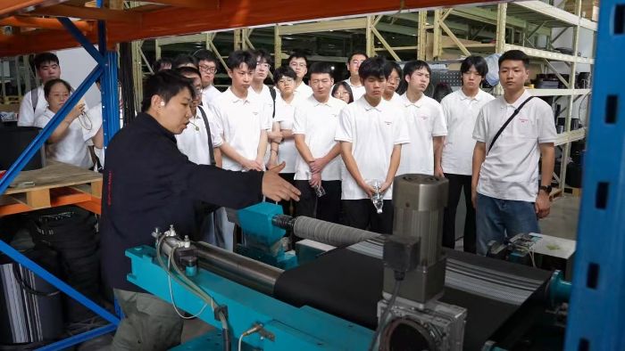 在上海敏硕总仓,同步带切割过程无疑是一个亮点。学生们亲眼见证了从原材料选择到精准切割的每一个细节。在切割车间,现代化的机械设备和精密的切割工艺令人叹为观止。企宣部吴经理耐心地向学生们讲解了同步带切割的技术要点和操作流程,包括如何根据客户需求选择合适的材料、如何通过电脑程序设定切割参数,以及如何利用高精度切割设备确保产品尺寸的准确无误。