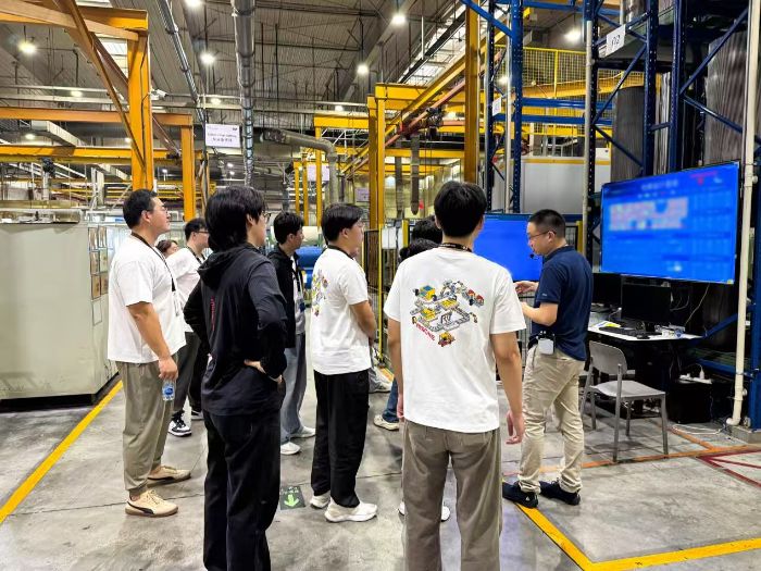 在王工的带领下同学们在参观欧皮特成产制造工程车间江一帆摄