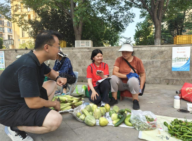 活动延伸至小卖部内和卖甜瓜摊位,面对长辈群体,成员们一边普及垃圾分类,一边演示大模型实用功能,教大家用豆包查“到明湖公园最佳路线”,展现AI对生活的助力。从孩童到长辈,让绿色理念与智能生活融入社区日常。