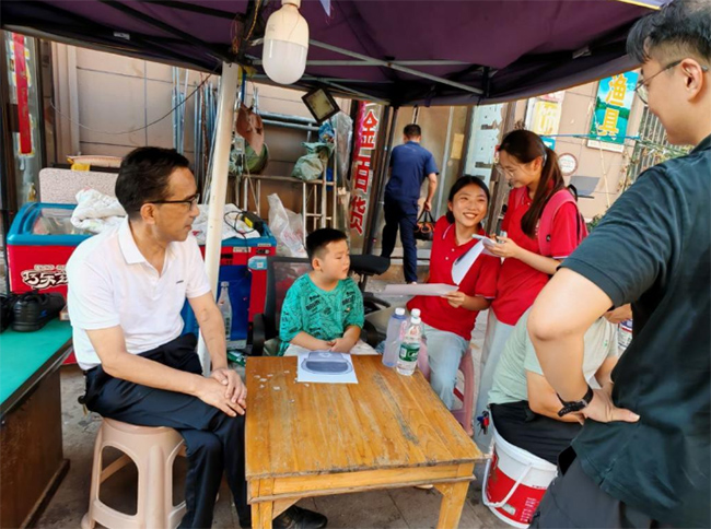 结束首日活动后,团队走进社区小卖铺及周边开展“科技+环保”实践。在小卖铺门口遇到爷孙俩,征得同意后,为孩子开启“垃圾分类AI课堂”。先讲解可回收物、有害垃圾等分类知识,再借助豆包AI互动,抛出“纸张属于哪类垃圾”等问题,让孩子先判断,再通过语音通话让豆包验证,新奇形式让分类知识轻松“入脑”。