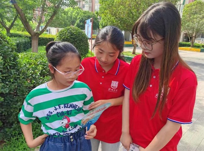 为让知识留存更久,团队准备了印有防溺水标志,应急求助电话的定制扇子。发放时,通过趣味问答互动,如“小伙伴想私自下河游泳,要怎么劝阻呀”,引导孩子们回忆知识、主动作答。拿到扇子的小朋友们兴奋不已,有的当场就和同伴分享扇面上的要点,让防溺水安全意识在趣味互动中扎根。