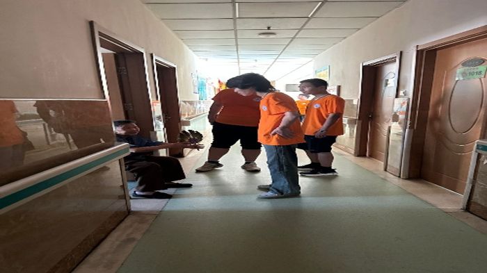 在工作人员的带领下,实践队分成若干小组,分别前往不同楼层的老人宿舍。一进入宿舍区,同学们便感受到了浓厚的生活气息。老人们有的坐在走廊的椅子上晒太阳,有的在房间里悠闲地看着电视。看到同学们的到来,老人们的眼中瞬间亮起了光芒,脸上露出了慈祥的笑容。