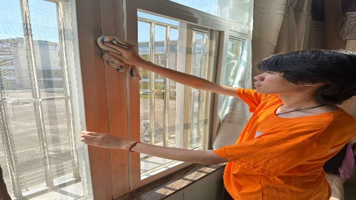 在擦玻璃的过程中,同学们还发现了一些小细节。有的老人宿舍里摆放着许多照片,记录着他们年轻时的美好时光;有的老人则在窗台上种满了绿植,为房间增添了一份生机与活力。这些小细节,都让同学们更加了解老人们的内心世界,也让大家更加坚定了为他们创造一个整洁、舒适生活环境的决心。