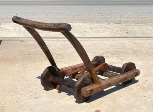 我是木学步车,粗糙木纹里全是笑闹和土腥气。过去载着娃娃们摇摇晃晃,迎过第一回独立迈步,装过刚摘的野花、田边的泥球,吱呀吱呀地,就把这片土地上的童真与欢喜,刻进岁月的辙印里。每一道轮印,都是对成长的奔赴,我揣着这方水土的热闹劲儿,守着乡土的根 。