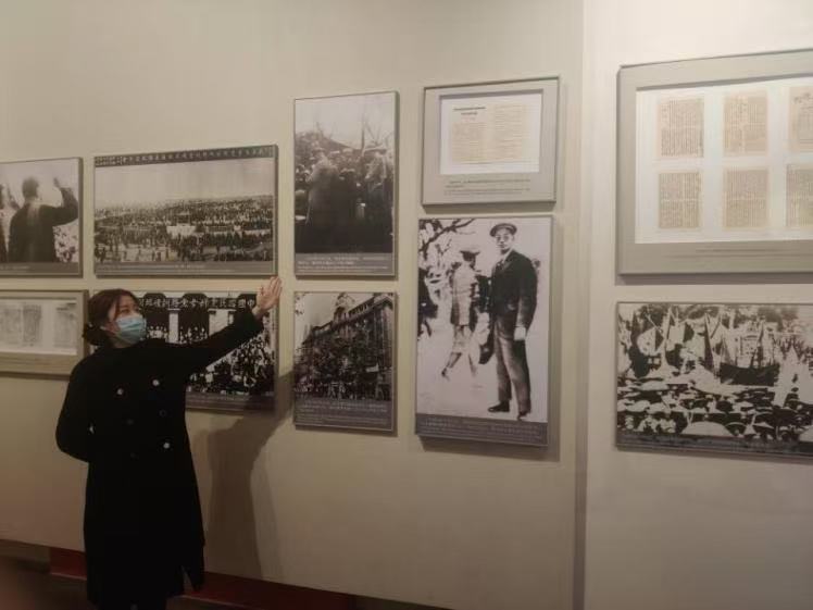 图为张太雷讲解员为团队成员讲解张太雷事迹。冯营帅 供图