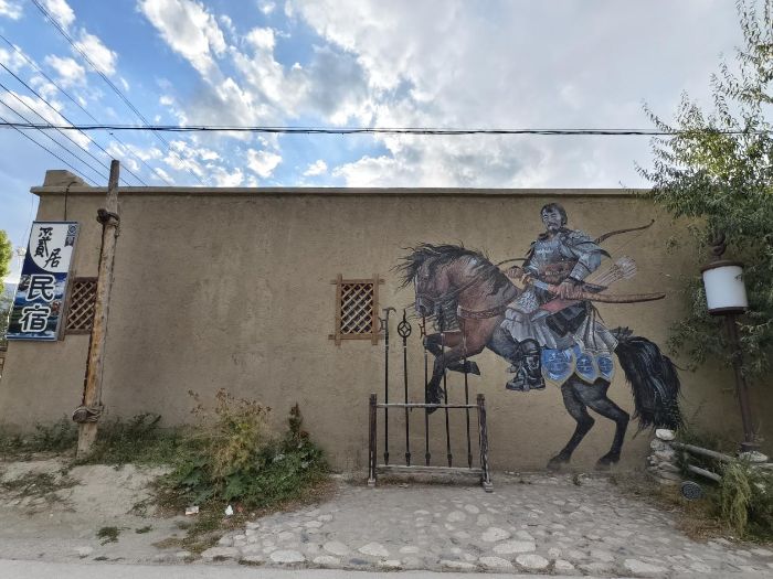 活动过程中,团队聚焦“戍边文化的历史基因与当代传承”研究主题,展开立体化考察。队员们聆听了村干部讲述1762年清政府设立13处卡伦哨所的历史壮举;穿梭于“故里巷”“出征巷”等六大主题巷道,欣赏墙体彩绘中察哈尔部“自带战马参军”的史诗场景;走进护边员巴特尔家三代居住的石屋,感悟巡逻日志中“一生只做一件事”的承诺,深刻理解国土安全人人有责,明白战马踏出的西迁路,铺就了中华民族共同体意识的基石。夜幕降临,团队在非遗小院一同参与了《边关情缘》歌舞剧排演,托布秀尔琴弦流淌的戍边旋律与萨吾尔登舞蹈的刚劲步伐,也让成员们真切感受到非遗技艺与红色精神的深度融合。