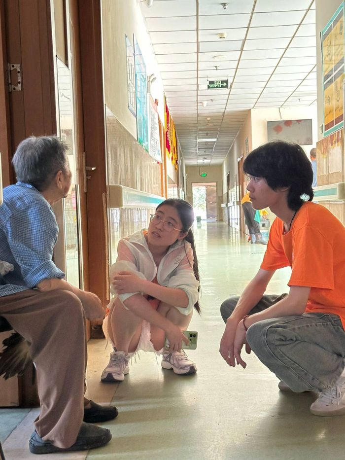 (图为实践队队员与老人聊天。 康芷岚 供图)