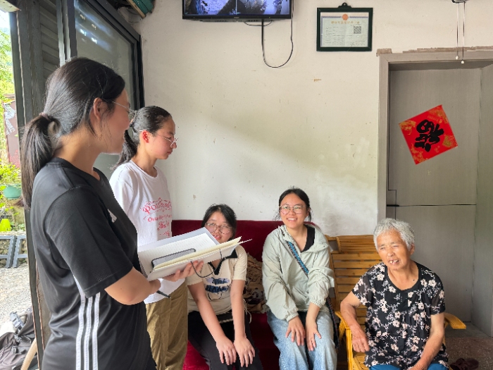 带着对语言与文化共生关系的思考,团队前往双后岗村,专访国家级畲族山歌传承人蓝陈启女士。这位曾将畲歌唱响日本、美国、韩国等国的非遗守护者,不仅展示了畲歌展演时的精美服饰,更分享了珍贵的活动影像。蓝陈启女士的讲述让团队成员深刻体会到,畲语不仅是交流工具,更是维系民族认同、促进文化传播的精神纽带。