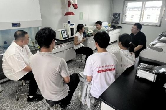 ▲ 图为团队成员参观实验室 彭优摄 ▲ 图为刘琴老师与团队成员交谈 周晓天摄