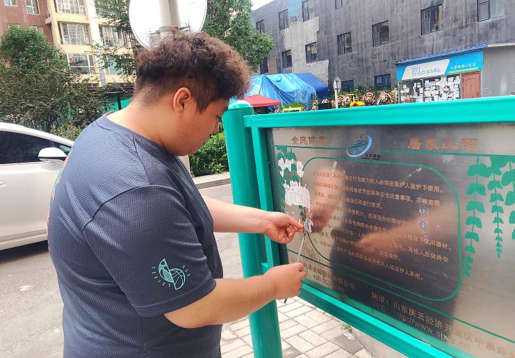 深入社区网格,实践团成员参与了环境卫生整治,安全隐患排查,老化设备检查等具体工作。其中,为深入推进全国文明城区创建工作,还居民一个整洁,优美,文明的居住环境,实践团成员自备铲刀,喷壶等工具清理困扰社区多年的顽固小广告,果断向社区“牛皮藓”亮剑。