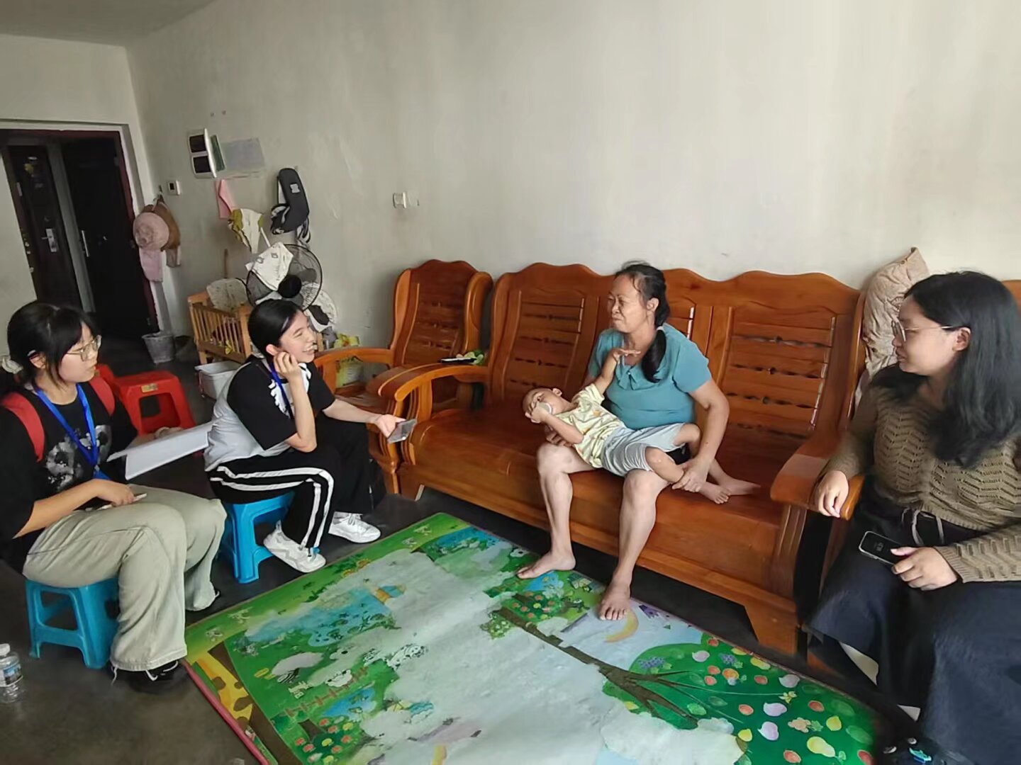 图为团队成员在盛林社区进行入户调研 林兰兰摄