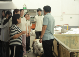 炼白是通过化学和物理方法去除蚕丝杂质、油脂和色素的关键环节,直接影响丝质纯净度与柔软性。技术工作人员带领实践团成员参观炼白细节制造工作车间,实践团详细了解助剂配比、温度控制、时间把握等核心技术参数,观察到传统工艺与现代环保技术的创新融合。