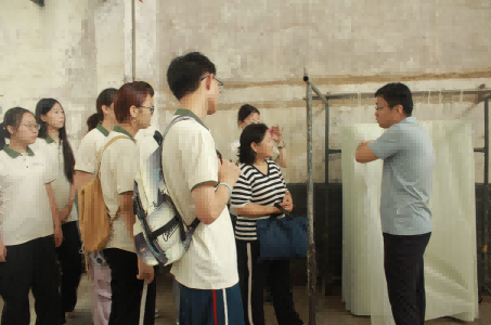 山东理工大学鲁泰纺织服装学院“织梦山东·丝旅新生”实践团于7月15日,走进淄博大染坊丝绸集团有限公司,深入生产一线,在技术员指导下进入工艺车间,系统学习首道工序——炼白。