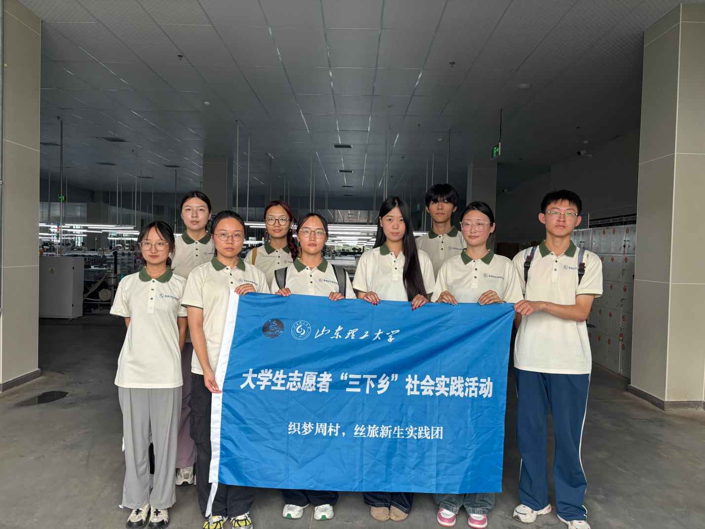 为深入了解丝绸产业的现代化生产流程,探索传统工艺与现代技术的融合路径,7月20日,山东理工大学“织梦山东,丝旅新生”实践团走进淄博大染坊丝绸集团第二工厂,开展深度调研学习活动。本次实践聚焦丝绸生产的全产业链流程,涵盖生丝加工、纺丝、卷丝、织布等核心环节,并围绕智能制造、绿色生产等议题展开专项调研。