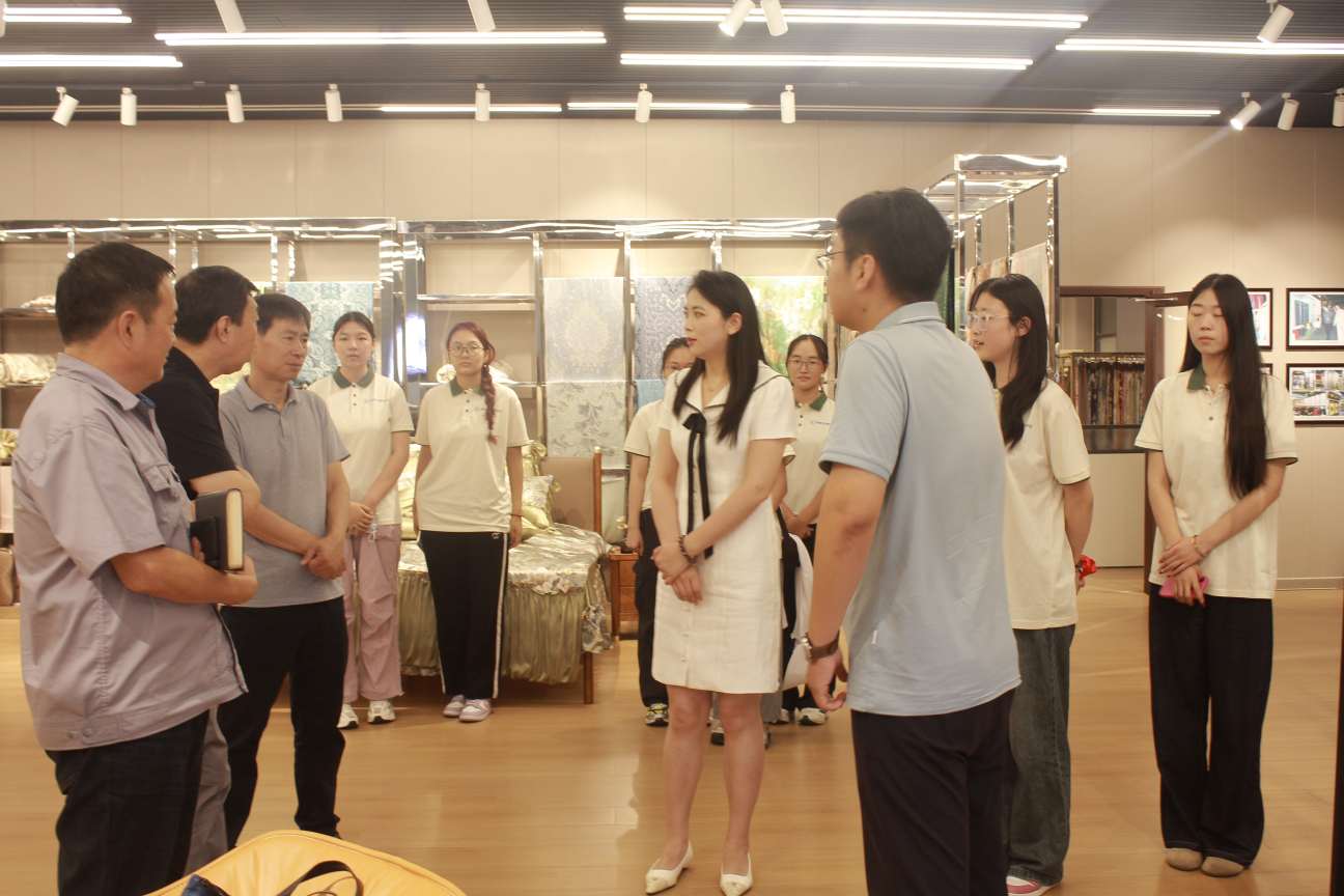织造车间是本次参观的重点。一台台先进的宽幅剑杆织机以每分钟300转以上的速度运转,根据不同的设计要求,丝线在杆织机上交织成各种图案和纹理的丝绸面料。随行的工厂负责人耐心地为实践团成员讲解织布的工艺原理,包括经纱、纬纱的搭配,以及不同织法所呈现的效果等专业知识。