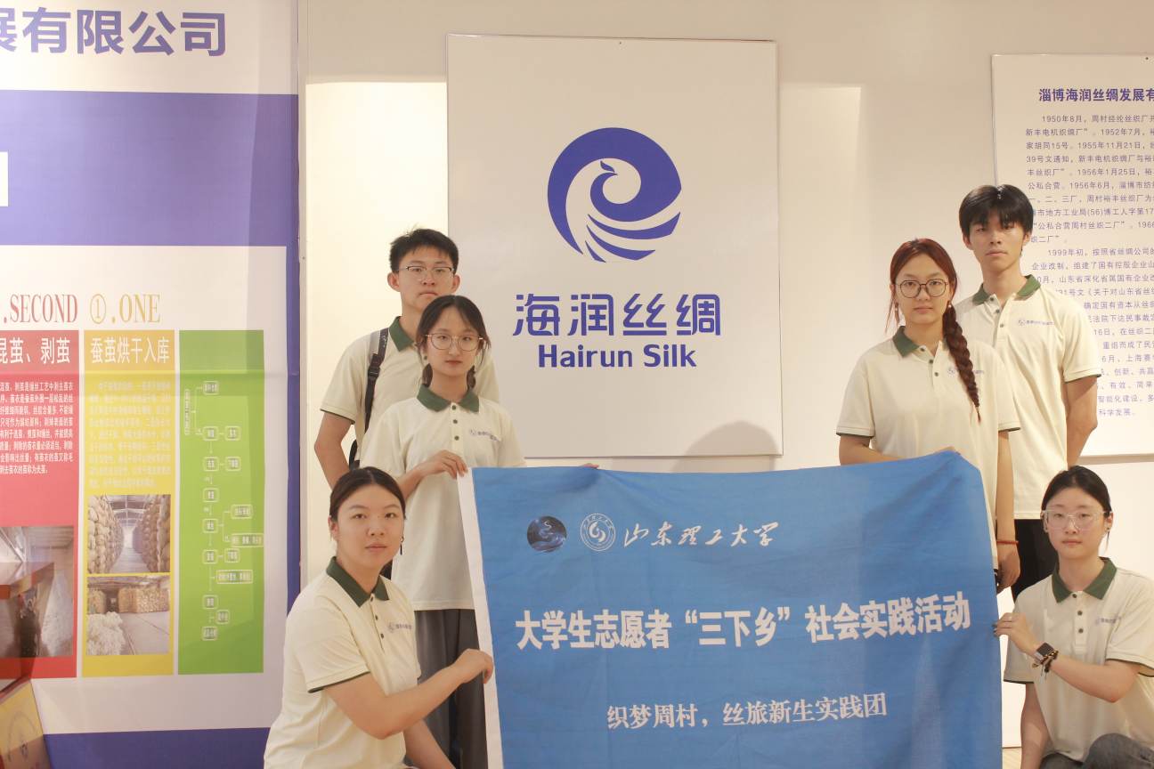 2025年7月24日,山东理工大学鲁泰纺织服装学院"织梦山东,丝旅新生"社会实践团赴淄博海润丝绸文化展厅开展专题调研活动。此次参观是实践团了解丝绸文化创新应用、探索传统工艺现代表达的重要实践。