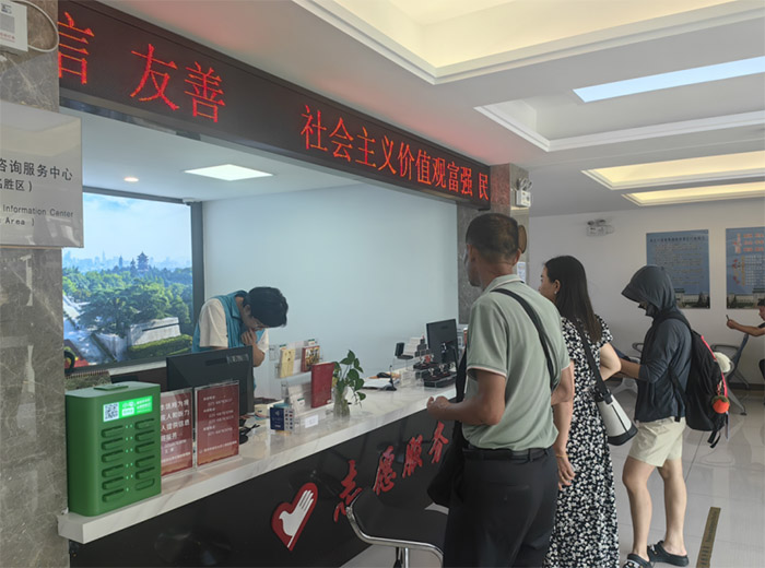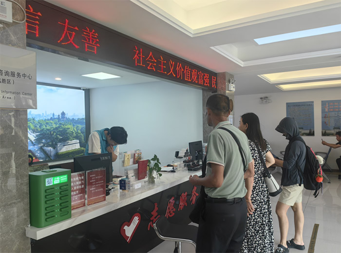 我们的工作以游客服务为核心,承担多方面工作。一是基础咨询引导,在服务中心窗口及园区入口处,为游客提供路线指引,详细讲解纪念馆、纪念碑、烈士就义群雕等核心景点的位置与历史背景;二是便民服务支持,协助游客寄存行李、租借轮椅与婴儿车,解答票务预约、开放时间等常见问题,同时负责维护服务中心的便民物资,如及时补充饮用水、纸巾、应急药品等;三是秩序维护与文明引导,在人流密集时段疏导参观队伍,提醒游客保持安静、爱护园区环境,避免触碰文物与纪念设施,还协助工作人员完成节假日祭扫活动的现场引导工作,确保活动有序开展。