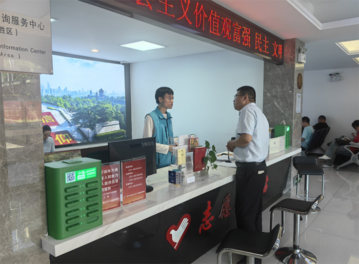 3.便民服务与物资管理:管理前台便民服务箱(提供常用药品、老花镜、针线包等)、宣传资料架(放置陵园介绍、活动预告、爱国主义教育读本等)。根据需要向游客发放相关资料,并及时补充所需物品。
