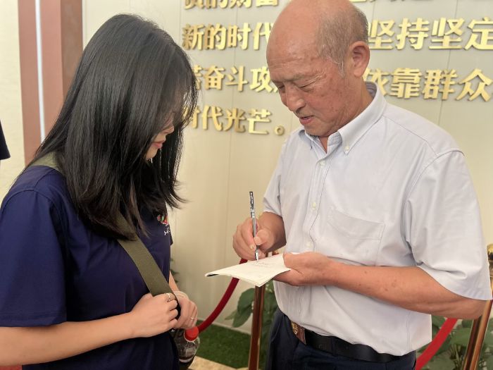 深入交流:寄语点亮前行路交流尾声,石金龙留下寄语:“发扬革命传统,争取更大光荣 —— 曾志之孙石金龙”。十二字既致敬先辈革命与红色金融探索精神,也饱含对青年传承红色基因、助力金融赋能乡村振兴的期许。