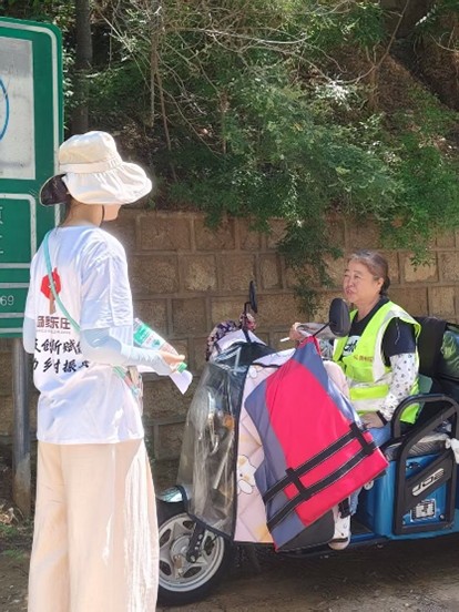 实践队还积极开展科普宣传与推广活动。面向村内儿童举办食品安全与生态主题宣讲,组织叶脉书签和风向标制作实践;通过线上直播开展食品安全科普和“云游东庄”全景推介,累计获超1.3万次点赞,有效扩大村庄知名度;结合本地自然与文化特色,设计绘制乡村墙绘,提升村容村貌与文化氛围。
