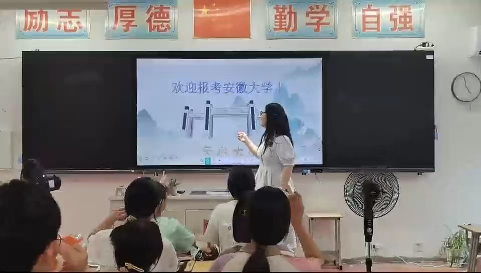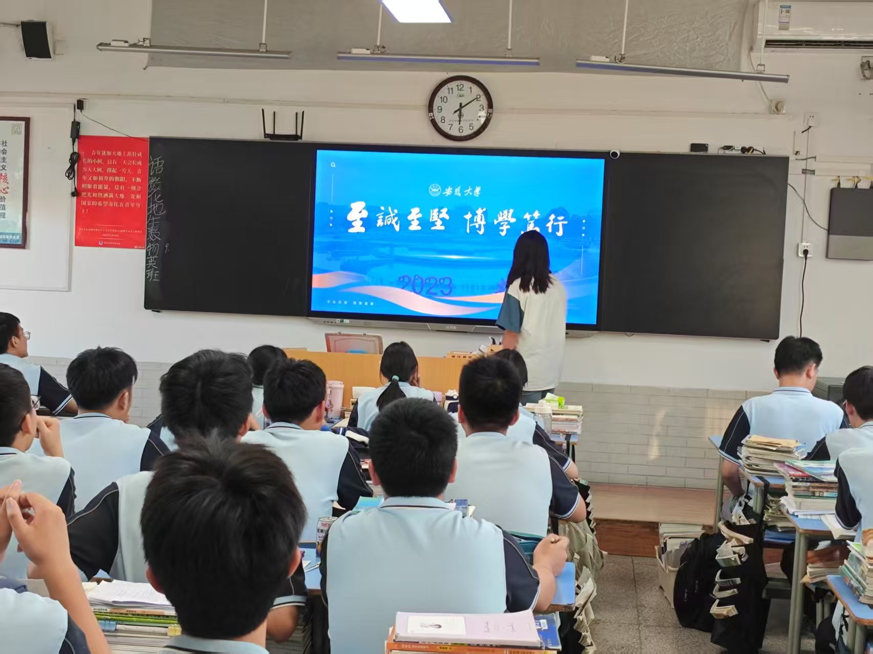 多维宣讲,传递温度 在宣讲活动中,团队采用了丰富多样的形式,全方位展示安徽大学的风采。互联网学院2025级互联网金融专业的孟子程同学,在肥东一中、肥东圣泉中学的宣讲中,通过精美的PPT和精彩的视频,展示了安徽大学优美的校园环境、丰富的专业设置,还分享了自己丰富多彩的大学生活经历,让高中学子们对大学生活充满了向往。人工智能学院大二机器人工程专业的汪子玮担任宣讲指导员,他深知学生的需求,特别准备了备考策略与志愿填报的相关内容。在宣讲过程中,他注重与学生互动,耐心解答学生的疑问,并根据现场氛围灵活调整宣讲节奏,极大地增强了学生们的参与感 。