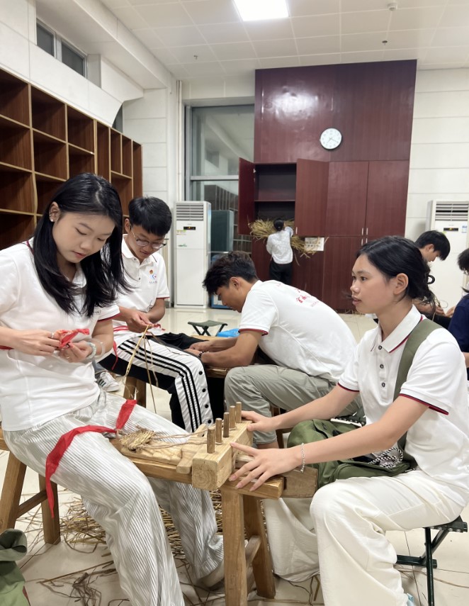 编草鞋教学看似简单,实则充满挑战。稻草粗糙易滑、绳结松紧度难把握,谭健花了近两小时,手指被磨得发红,才勉强完成一双边缘参差不齐的草鞋。看着手中的成品,成员们不禁联想到革命先辈穿着草鞋翻山越岭、行军作战的场景,“不怕苦、不怕累”的艰苦奋斗精神从此深深烙印在每个人心中,成为今后面对困难时“不退缩、不放弃”的精神动力。