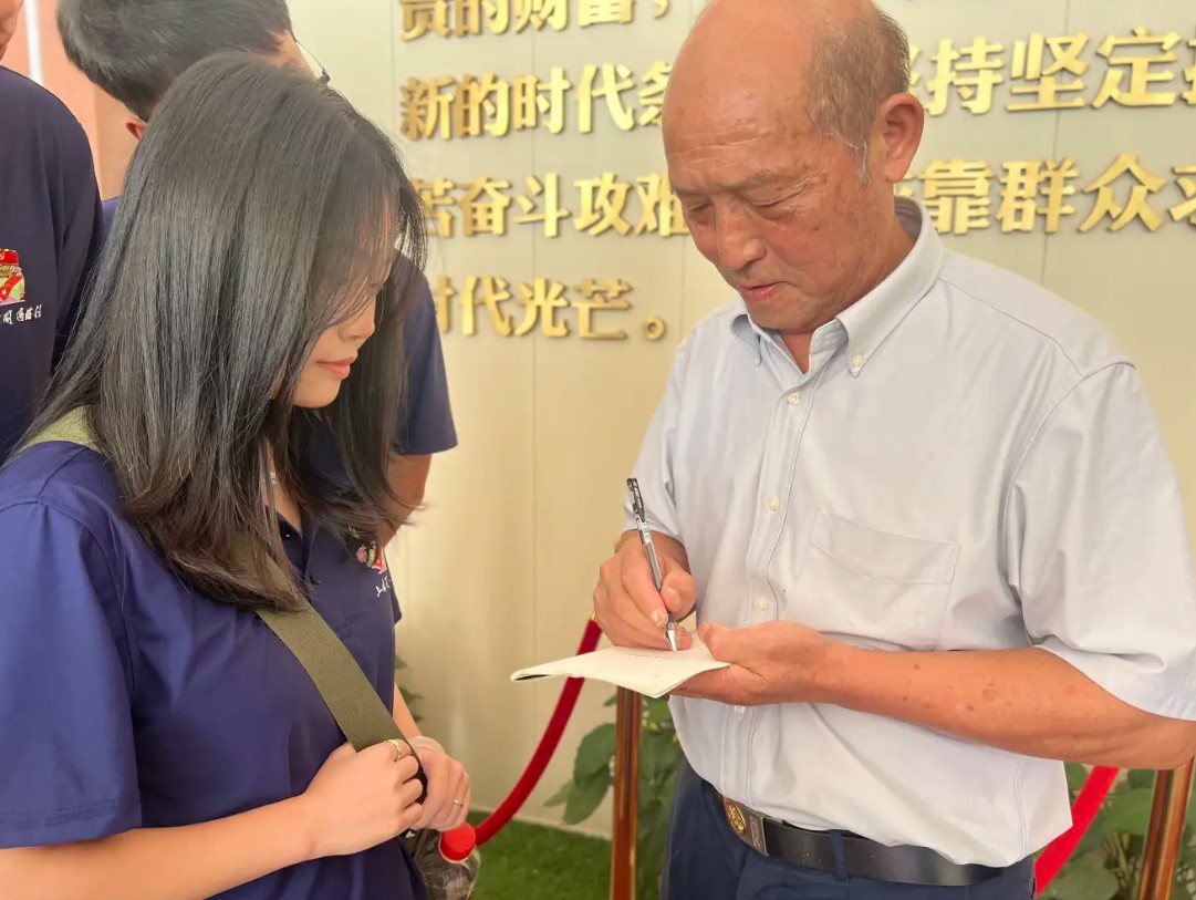 图为巾帼英杰曾志的孙子石文龙为实践团成员寄语