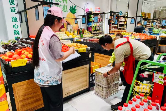 8月10日在U家连锁超市调研期间,队员们在了解农产品进货、质检、上架全流程——包括多元化采购策略、依托数据分析调货、质检体系运行等情况时,专门与超市工作人员就“民族知识在服务中的融入”进行交流。向其普及各民族消费习惯的共通与包容之处,建议在标准化管理中可适当融入民族团结元素;针对商品标签信息完善问题,也结合“各民族平等享有清晰消费信息权”的角度提出参考思路。同时在关注电子支付普及及偏远摊贩数字化难题时,强调“各民族在发展中互帮互助,能共渡转型难关”的理念。