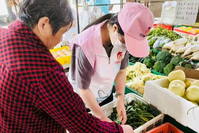 随后走访周边农贸市场摊点时,实践队在调研农产品自产自销模式、品质差异等情况的过程中,穿插民族文化宣传工作。听摊主分享凭茄子蒂瓣颜色辨新鲜度的传统经验时,向摊主及周边消费者介绍不同民族的传统农耕智慧共性;在观察消费者采购习惯、高温致蔬菜损耗等现象时,以通俗案例讲解“民族团结能汇聚发展合力,助力解决民生经营小难题”,引导大家感知各民族协作的现实意义。