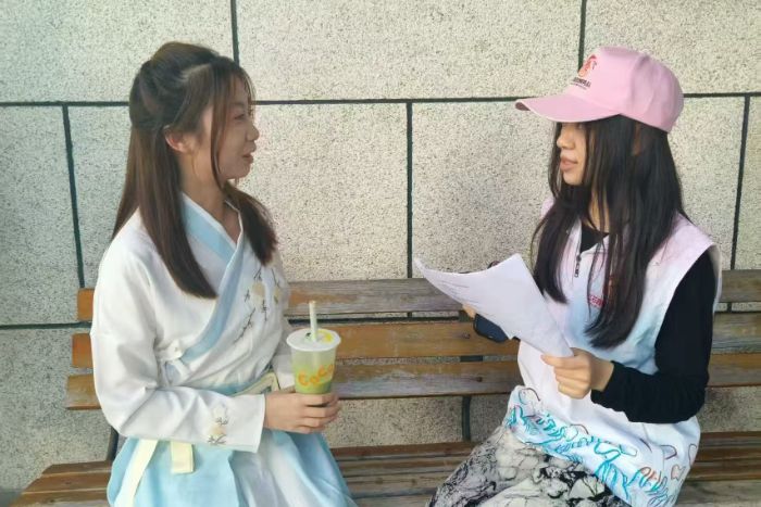 此外,实践成员采访了一名旗袍爱好者,了解到旗袍源于满族旗装,清朝时满族女性服饰为宽袍大袖,后来受民国时期西风东渐、女性追求独立解放影响,逐渐收腰显瘦、简化线条,其立领象征中式端庄气节,盘扣蕴含团圆美满寓意,花式盘扣还藏着吉祥符号。汉服形制随朝代演变,如先秦深衣、汉代襦裙等,所涉为交领右衽形制,保留上衣下裳古制,展现端庄典雅;其色彩如白、浅蓝,体现对自然、简洁美的追求,花卉图案传达对自然生机与美好品德的崇尚,尽显传统审美观念。