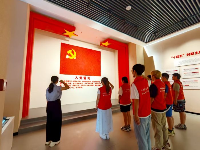 同时,在伊犁哈萨克自治州博物馆团体开展党课学习,指导老师肖雅蕊带领团队成员面向党旗庄严宣誓,铿锵誓言传递着青年传承红色基因、践行使命担当的决心,让暑期实践成为筑牢信仰、砥砺初心的生动课堂。