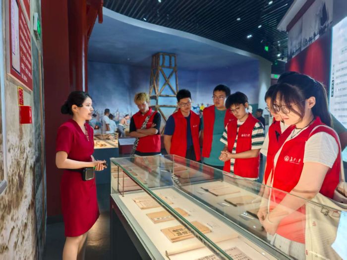 图为讲解员为团队讲解林则徐纪念馆文物。踪雨欣供图