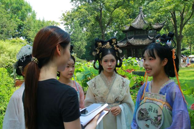 图为实践团队成员陈思源采访来自江西的汉服小女孩们。苏家豪 供图。