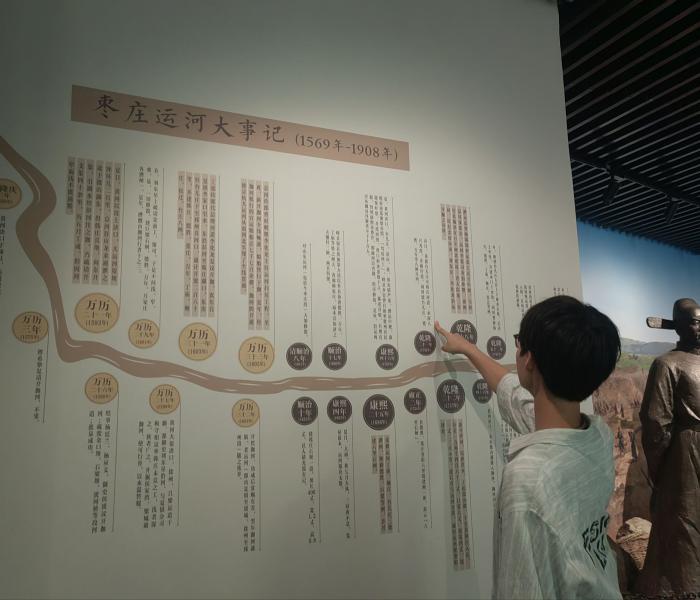 作为国家一级博物馆,枣庄市博物馆的明清运河文化展区堪称宝库,漕运文书、古船构件等珍贵文物在此静静诉说着往昔岁月。实践队成员一踏入展区,便迅速投身紧张有序的调研工作。他们化身 "历史侦探",细致记录每件文物的年代、用途及关联历史事件,不放过任何细微之处。同时,队员们结合馆内方志史料,对运河枣庄段的开凿背景、航运规模及对区域文化的影响展开深入考证。在与博物馆工作人员的积极交流中,他们不断深化对运河历史的认识,逐步勾勒出枣庄运河的文脉轮廓。