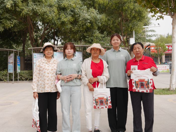 随后,团队成员向居民发放关于新疆抗战贡献认知程度的调查问卷。居民们积极参与,认真填写,从他们的反馈中,能进一步了解社会各界对这段历史的认知情况,为后续形成客观报告、分析问题并提出解决措施提供依据。抽奖环节将活动氛围推向高潮。团队为此次活动精心准备了自行设计的文创产品作为奖品,包括印有抗战元素与民族团结符号的帆布包、水杯、书签、钥匙扣等。幸运居民在收获惊喜礼品的同时,也对这些充满意义的文创产品赞不绝口,纷纷表示会珍藏这份特殊的“记忆载体”。