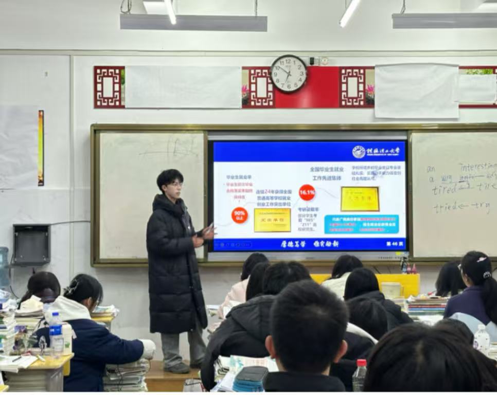 2025年2月,正值寒假期间,桂林理工大学“情暖桂工·筑梦母校”宣讲团积极响应“返家乡”社会实践号召,走进桂林市灵川中学,开展了一场主题为“情暖桂工·筑梦母校”的宣讲活动。此次活动由桂林理工大学团委组织,旨在进一步加强桂林理工大学与高中母校的联系,为灵川中学高三学生提供全面的高考政策解读和大学教育资源分享。宣讲团成员由桂林理工大学优秀在校生组成,他们通过精心准备的宣讲内容,向学弟学妹们展示了桂林理工大学的师资力量、学习环境、科研成果以及就业优势,并详细解读了高考报名流程和补助政策,帮助高三学子明确目标、增强信心,为即将到来的高考注入动力。此次活动不仅搭建了高校与高中之间的沟通桥梁,也为灵川中学学子提供了宝贵的升学指导。