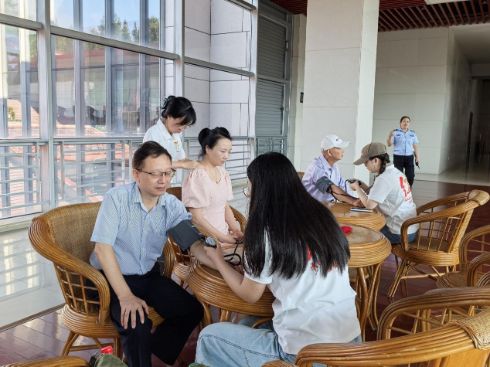 义诊送暖,健康服务贴近民众实践队在博物馆公共区域设置了临时义诊点,为前来参观的游客和当地居民提供基础健康检查与服务。队员们默契配合,熟练操作血压计、听诊器等器械,耐心为大家进行检测。现场群众反应积极,有人关切询问健康状况,有人从容接受检查,也有不少人在得知结果后进一步咨询健康建议。通过与群众面对面交流,队员们切实感受到大众对健康的重视与需求,也更加坚定了投身医疗事业的信念。