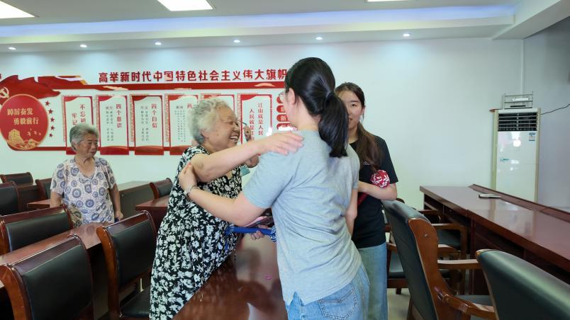 实践首站,团队扎根全国示范性老年友好型社区——阜宁县林海社区。基于前期与社区书记李爱娟的深入交流及扎实调研,针对社区老年群体突出的健康养生需求,精心策划了“艾草养生锤”非遗手工艺公益课堂。此外,团队还细致探访了长者食堂、阜宁一缕阳光志愿者协会等场所,为后续长期化、精准化的艺术服务奠定坚实基础。
