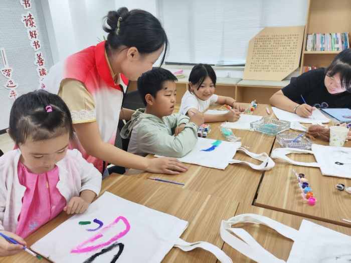 孩子们拿起画笔,在手绘环保袋上尽情挥洒创意——蔚蓝地球、萌态动物、彩虹森林……一笔一画间,环保理念悄然扎根。“我要用它代替塑料袋!”孩子们骄傲地展示作品,将绿色生活理念“袋”回家!